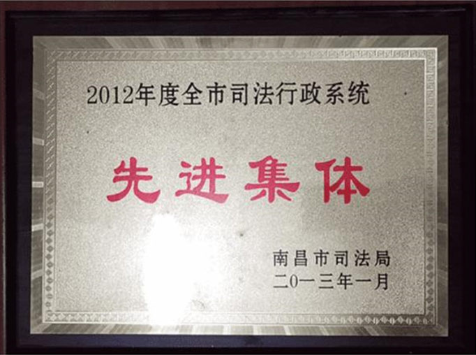 连续多年荣获南昌市司法局、市律师协会评定的 “年度先进集体”。