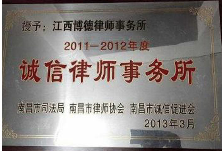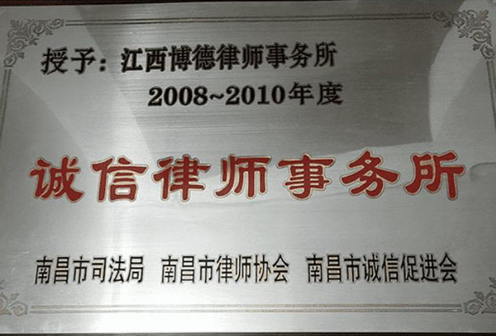 由南昌市司法局、南昌市律师协会、南昌市诚信促进会授予“年度南昌市诚信律师事务所称号”,诚信执业是我们的生命线。
